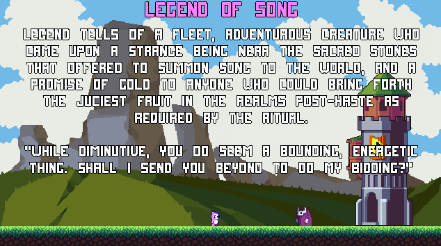 Legend tells of a fleet, adventurous creature who came upon a strange being near the Sacred Stones that offered to summon Song to the world, and a promise of gold to anyone who could bring forth the juciest Fruit in the realms post-haste as required by The Ritual.